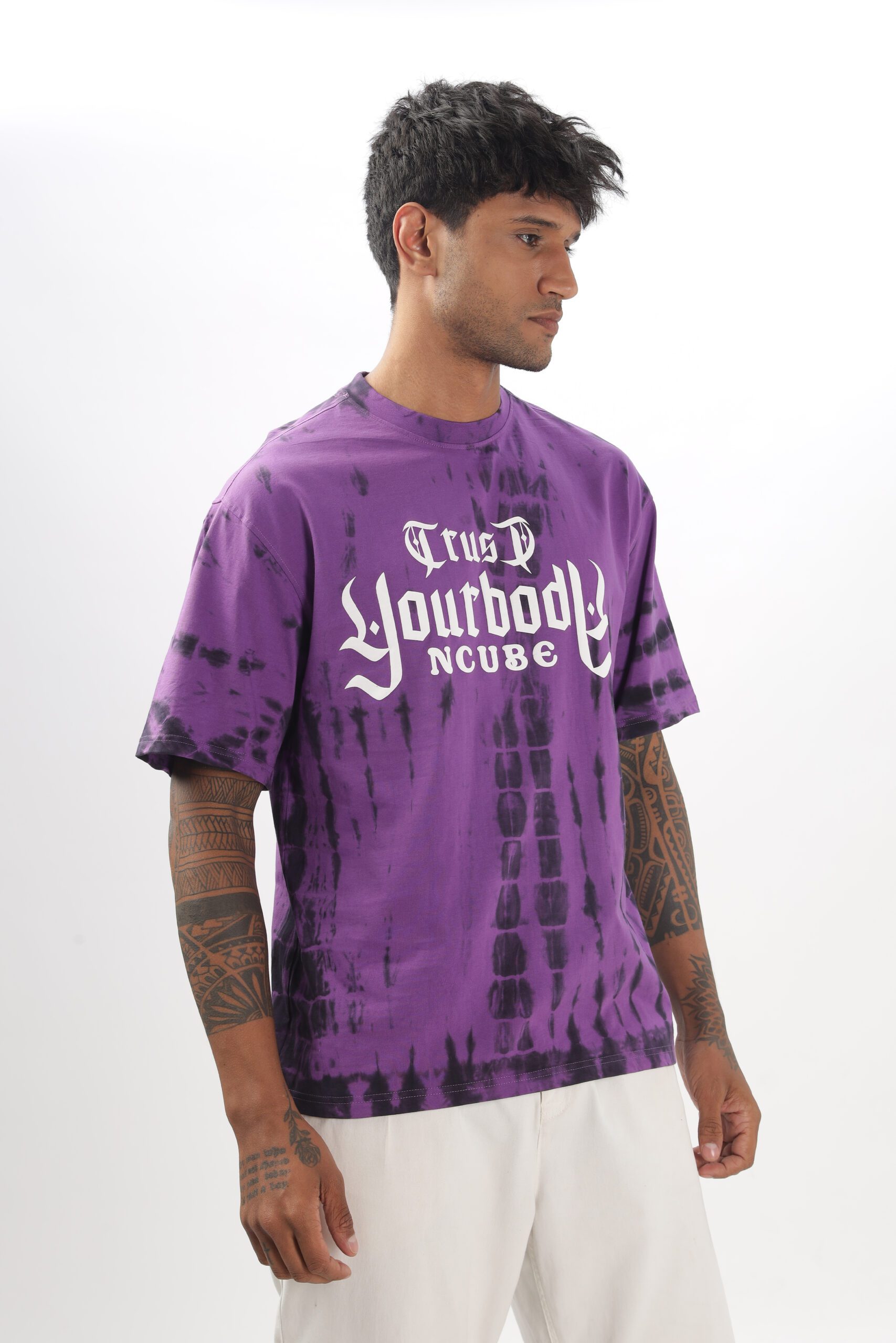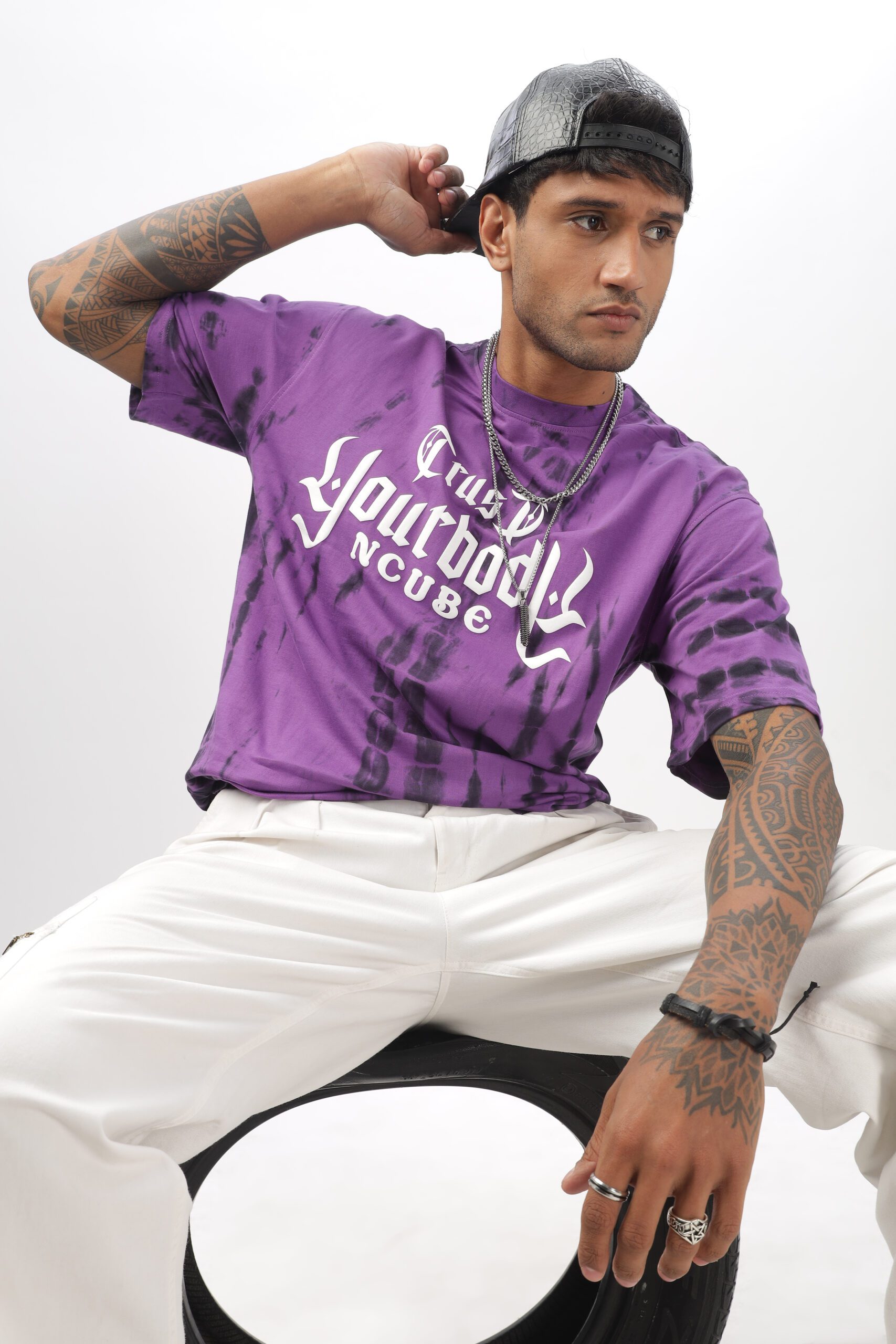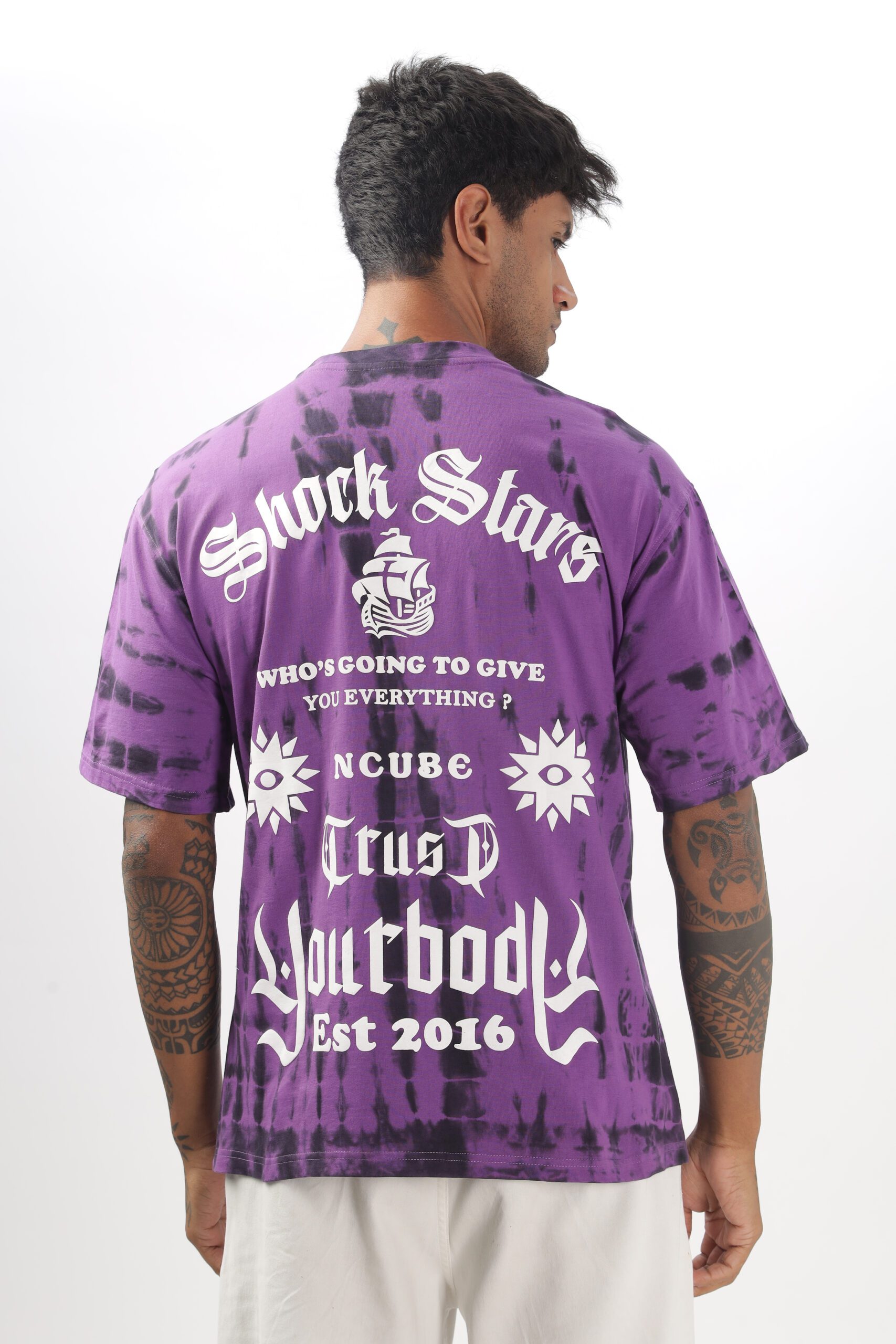 HEAVY GSM SINGLE JERSEY FABRIC OVERSIZED 5 SLEEVE TSHIRT WITH TYE DYED FRONT & BACK PRINT